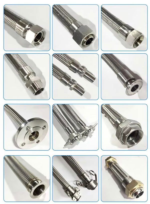 Some common types of end fittings for PTFE convoluted hoses include: